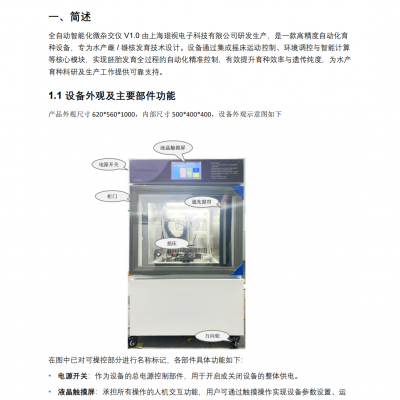 微杂交是指远缘杂交产生的同源后代(包括同源二倍体和同源四倍体),以及人工异精雌核发育产生的后代,其基因组几乎完全来自母本,但受到了来自父本的DNA片段的影响。微杂交微变化,但是在生长速度、抗逆性等方面有明显提升。雌核发育是微杂交理论及技术在育种中的具体应用,既有提纯效应又有异精效应。我公司团队利用微杂交技术在大宗淡水鱼和特色鱼等方面获得了突破性新种质,为新品种的培育和产业化应用奠定了重要的基础。世界上目前还没有专门的微杂交仪器,目前,我公司研发了微杂交仪器装置,填补了该领域的空白。相较于传统拼凑型的装置,该装置在安全性、智能性、灵活性和系统性等方面具有大幅度提升,具有以下优点:(1)安全性能好,封闭式,不泄露紫外线,相较于传统装置,该装置增加了避紫外线的防护膜,一方面用于遮挡外部光线,避免环境光线对实验产生干扰,另一方面能有效的防止紫外线泄露,造成对人体的伤害。(2)操作方便,液晶显示屏,可提前设置自动化程序,降温速度比较快,恒温效果好。(3)智能化程度高,紫外强弱、紫外线离培养皿的高度和摇床转速可以智能化控制,稳定性好,并且用户可以通过触摸操作实现设备参数设置