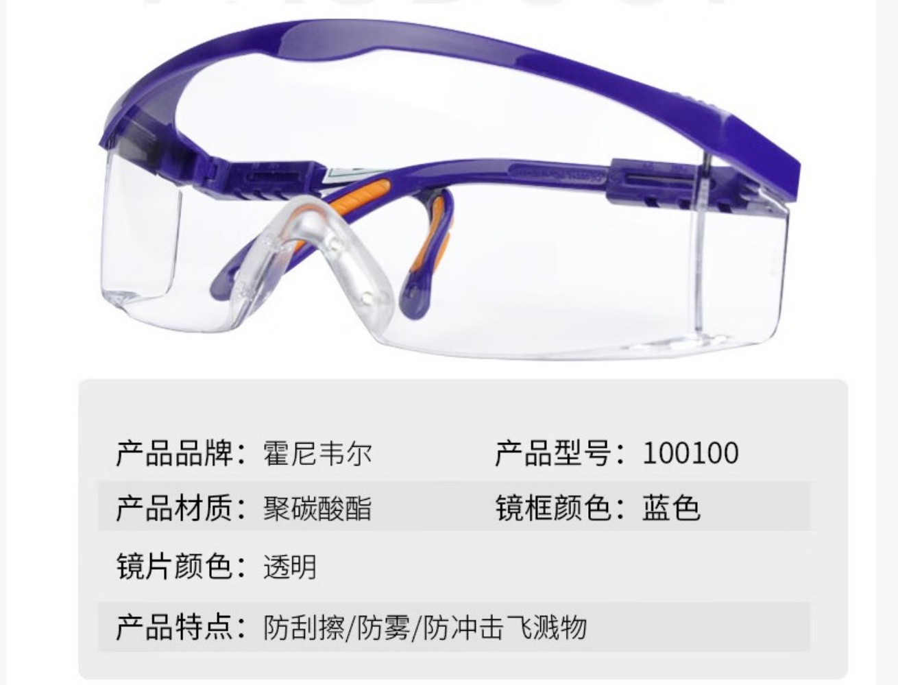 霍尼韦尔S300L明镜片防雾防刮擦眼镜
